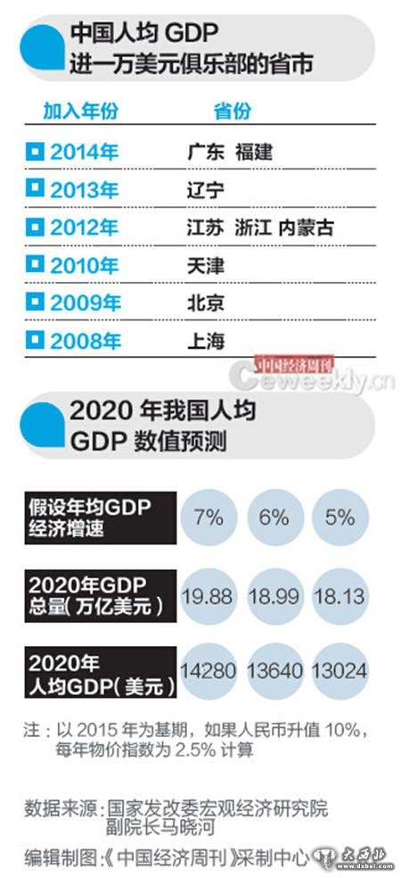 2013年,辽宁人均GDP过万。2014年,广东和福建两省人均GDP也双双超过了1万美元大关。