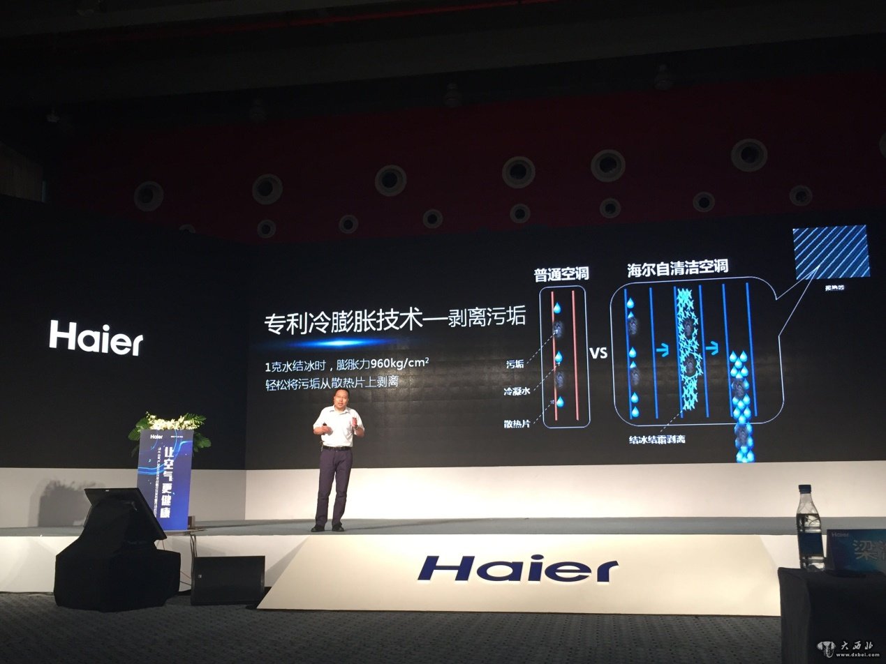 海尔空调研发人员表示,空调房内空气健康和脏肺空调二次污染是用户普遍关注的两个问题。海尔首创自清洁技术,实现空调给自己洗澡,解决了空调换热器脏、清洗难的问题。自清洁空调拥有冷膨胀技术、凝水技术、宝石蓝涂层以及抗菌技术等4项专利技术,能让换热器下的冷凝水结冰结霜,每克水结冰时产生960kg/cm2的膨胀力,强力剥离换热器上的污垢,并进行快速冲洗;同时独创抗菌技术杜绝细菌滋生,其专利银离子抗菌涂层抗菌率达99.99%,全方位保障了空调换热器的深度自清洁。