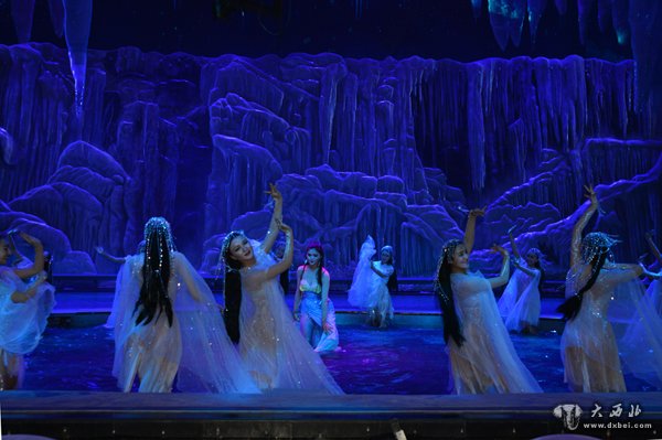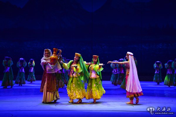 大西北网讯 2015年8月7日晚,世界首创室内大型实景民族歌舞秀《千回西域》在新疆大剧院成功预演,8月8日将在新疆大剧院正式激情上演。民族歌舞秀《千回西域》分大爱,玉魂,梦回,生命,燃情,草原之恋6个篇章。神奇的舞台集沐浴、滑冰、鲜花、雪山、瀑布、骆驼、骏马于一体。2000余人当晚观看了演出,对新奇激情的演出不时爆发出阵阵掌声。