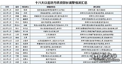 另外18位十八大后任职的部长中,今年任职了7人,其中4月份4个省市集中上任,分别是北京、河南、湖北和重庆,5、6、7月各一省区上任,分别是宁夏、山东和甘肃。2014年履新4人,2013年7人。