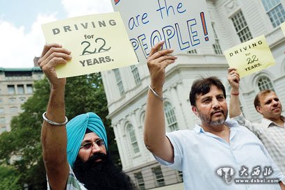 美国纽约,出租车司机上个月组织集会,支持纽约市议会对Uber等新型汽车服务公司颁布车辆数量限制措施。CFP