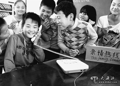 9月24日,河北省广平县北温中学留守学生通过学校开设的“亲情热线”给远在外地务工的父母汇报学习情况,送去节日的祝福。