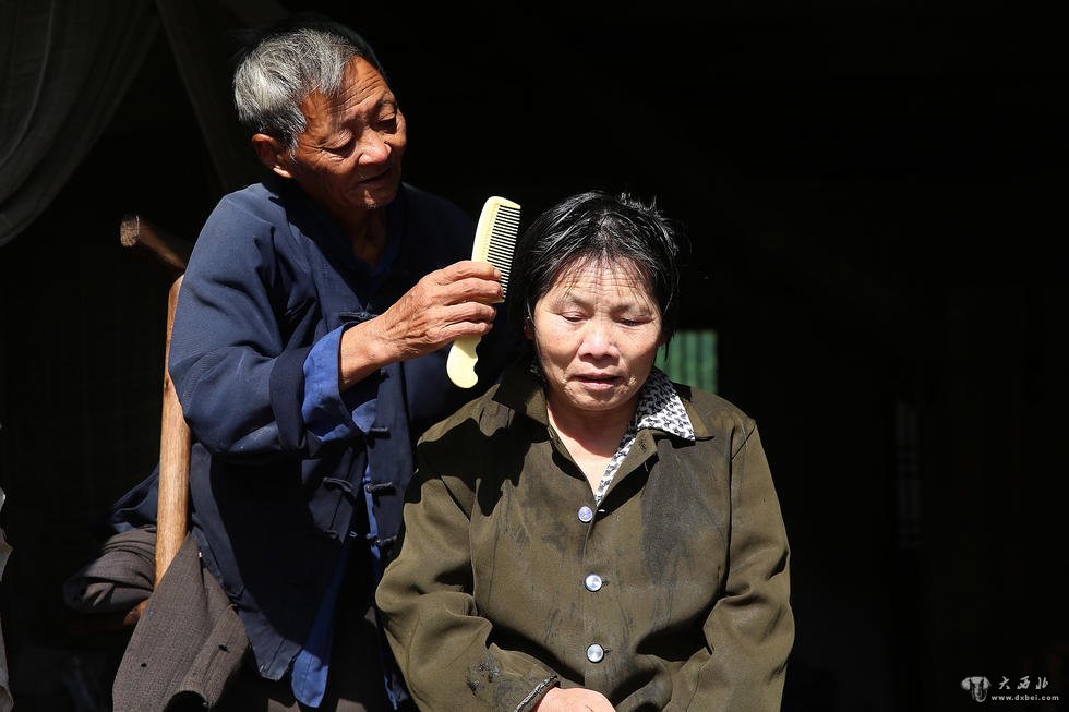 盛秉植细心地给妻子梳理着刚刚洗好的头发,用手中的剪刀耐心地理着发梢……这温馨的一幕,村里人常常看到。盛秉植说,结婚四十多年了,以前都是妻子照顾他,现在他要照顾妻子下半辈子。现在家里的大小事都落到了只有一条腿的盛秉植肩上,他每天干完活,几乎就寸步不离地陪在妻子徐必球身边。十几年来,这对老夫妻就这样用一条腿,支撑起两个人的艰难生活,相依相偎地走着自己的人生路。