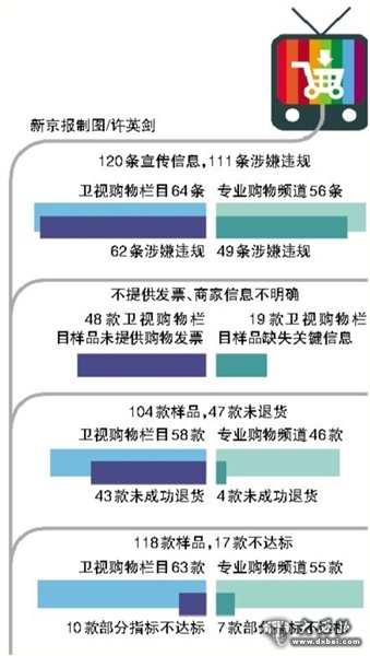 今年7月-10月,中消协针对北京卫视、天津卫视等33家卫视的购物栏目及中视购物、央广购物等12家专业购物频道,开展电视购物服务测评活动。