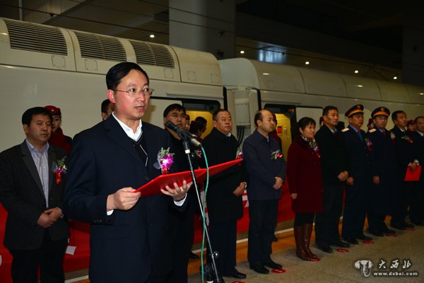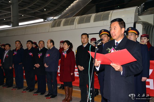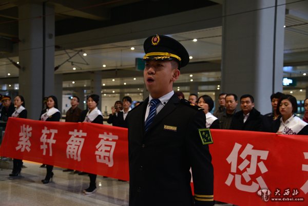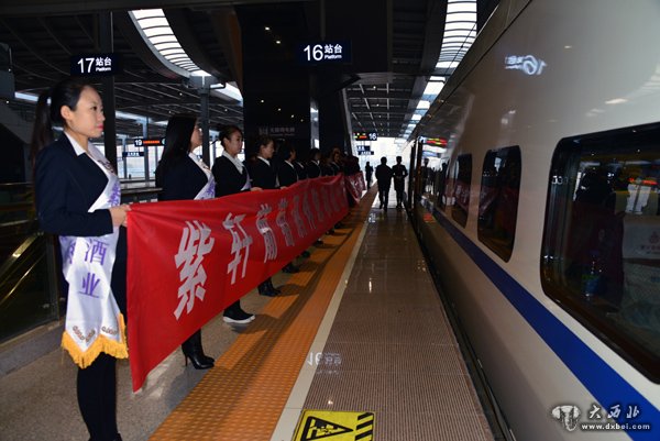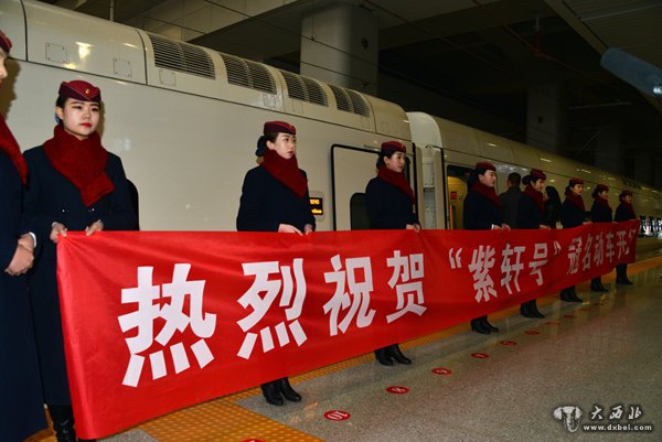 D2743次紫轩号高铁动车今日兰州西客站首发式。 贾笑云 摄
