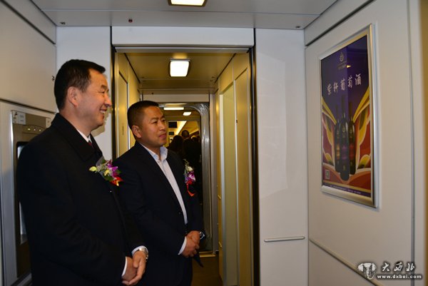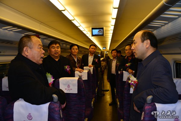 酒钢集团公司和兰州铁路局领导在紫轩号高铁动车首发列车上参观。 贾笑云 摄