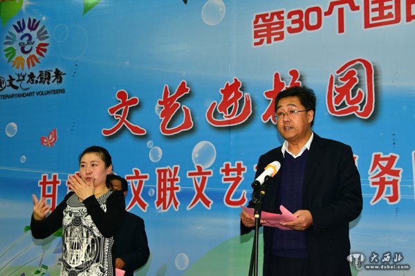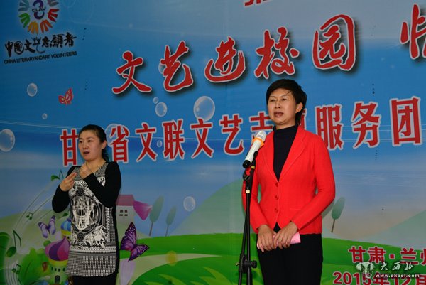 甘肃省文联党组书记、副主席、文艺志愿服务团团长周丽宁讲话。 贾笑云 摄