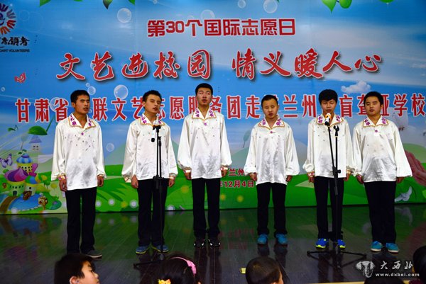 兰州市聋哑学校学生演男生出小合唱。 贾笑云 摄