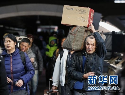 1月24日,旅客在铁路北京站进站上车。当日,为期40天的2016年春运正式拉开大幕。新华社记者 沈伯韩 摄