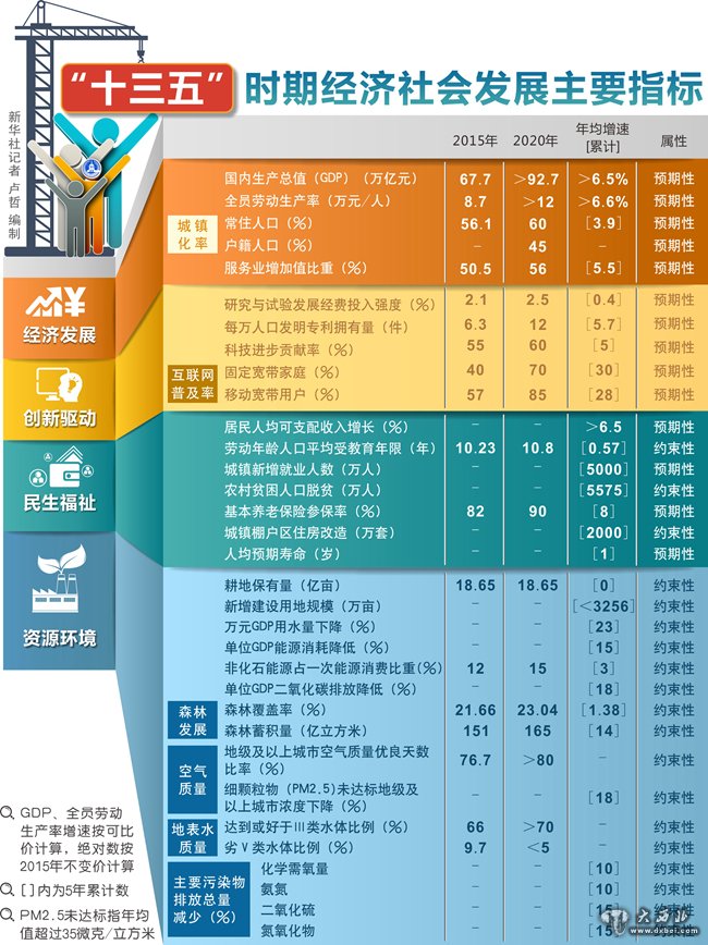 大西北网讯 今后五年,中国经济发展的潜力在哪里?“十三五”规划纲要草案中公布的六个指标,折射出中国发展的空间与前景。