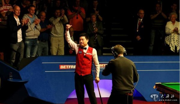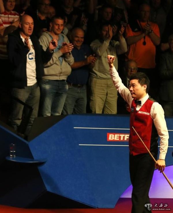 4月30日,丁俊晖在晋级决赛后庆祝。