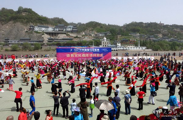 大西北网讯 2016年5月1日上午10时,兰州风和日丽,2016兰州国际马拉松八大配套活动之一,2016兰州国际马拉松赛体育文化嘉年华活动在兰州市城关区近水广场举行开幕式。800人在现场进行了全民健身和文体项目表演,数千游人观看了精彩的舞蹈演出。从即日起至6月11日,“丝绸之路沿线城市锅庄舞展演”、迷你马拉松“四季跑”“鼓舞飞扬喜迎兰马”等30场精彩的文体展演将在主会场——城关区近水广场以及城关区、七里河区、安宁区马拉松赛道沿线公园和广场等分会场举行,强力营造兰州国际马拉松的热烈氛围。