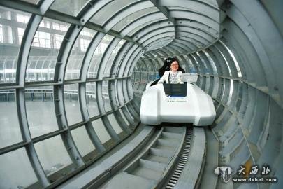 当记者走近一圈罩着有机玻璃的全封闭管道的实验平台前时,同行的参观者惊讶地喊出:“这不就是传说中的‘胶囊列车’吗?”实验部负责现场控制的老师王思明解释说:“这是我国第一个搭建完成的‘载人高温超导磁悬浮环形实验线’,此前仅德国有先例。这个玻璃罩,是为了以后做真空运行实验的,因为要让车辆达到上千公里的时速,必须排除空气的噪声和阻力。这也是‘胶囊列车’的前期设想。”