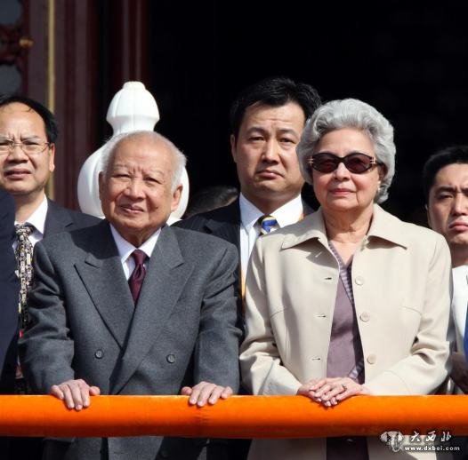 2009年10月1日,首都各界庆祝中华人民共和国成立60周年大会在北京天安门广场隆重举行。这是柬埔寨太皇西哈努克、太后莫尼列在天安门城楼上。(新华社记者 姚大伟摄)