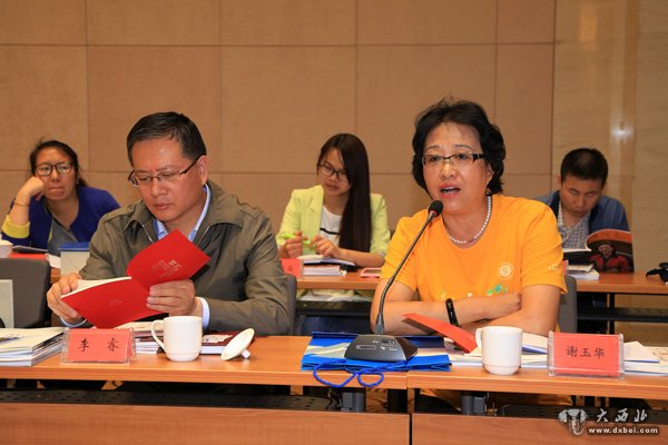 甘肃省政府驻北京办事处副主任、北京甘肃企业商会秘书长谢玉华主持项目对接会。 贾笑云 摄