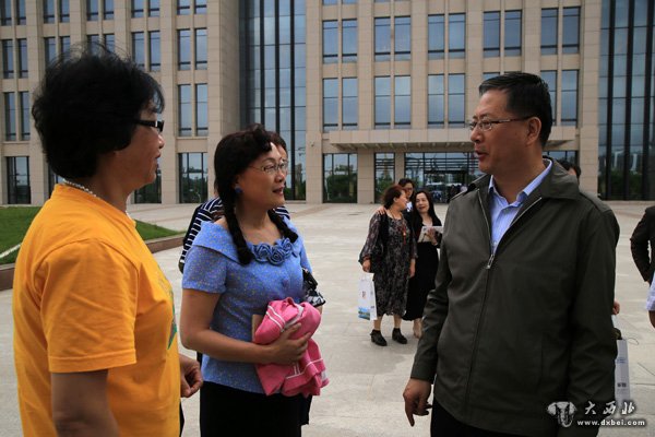兰州新区党工委书记李睿与北京甘肃企业商会常务副会长瞿金叶等交谈。 贾笑云 摄