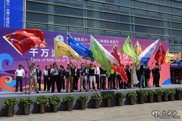 启动仪式上,主办方向中外各旅游团授旗,向境外留学生代表颁发《境外留学生甘肃旅游景区优惠手册》,向自驾车主代表颁发《丝绸之路自驾游护照》。