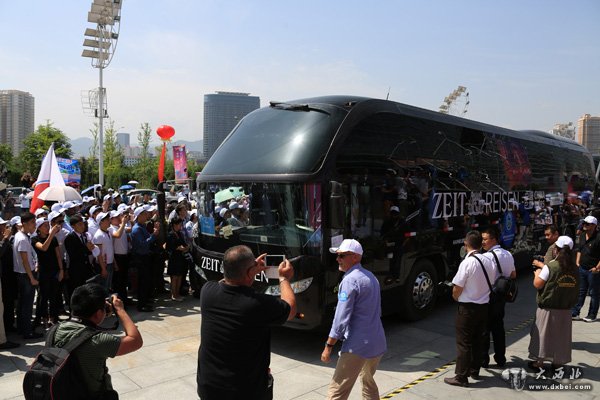 千万游客畅游甘肃启动仪式——旅游房车开进会场。 贾笑云 摄