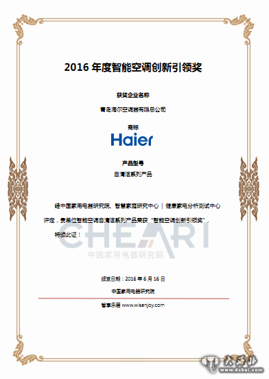 大西北网讯 “随着家庭健康的理念深入人心,家用电器已经进入以健康、品质、智能为主要特点的新时代。”在6月16日举办的以“智能空调技术创新对话”为主题的智享沙龙上,中国家用电器研究院测试技术研究所所长鲁建国发表了对当下家电产品升级的看法。会上海尔作为优秀企业代表被邀请演示了空调自清洁创新功能,并被授予“智能空调创新引领奖”。