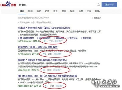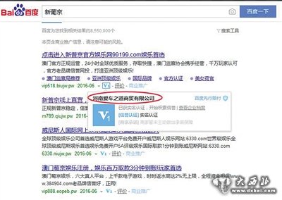 大西北网讯 以关键词“新葡京”在百度搜索呈现的首条信息被加“V”,认证为“河南爱车之道商贸有限公司”。