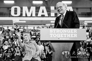 巴菲特当天前往内布拉斯加州小城奥马哈,与希拉里共同出席在当地一所高中举行的竞选宣传活动。巴菲特一直倾向于民主党阵营,希拉里宣布参选总统后,巴菲特成为希拉里的坚定支持者。