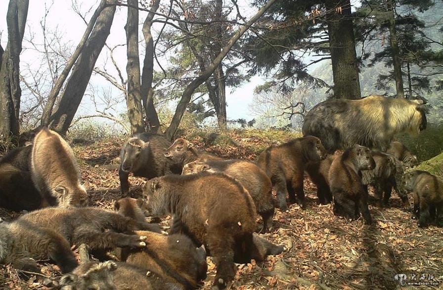 大西北网讯 十几只“超萌”的羚牛幼崽,一个挨着一个,安卧在山梁上、松林中晒太阳,外围有两三只成年羚牛悉心看护。日前,甘肃白水江国家级自然保护区的红外线触发式相机,拍到上述罕见画面——森林王国中的野生羚牛“幼儿园”。新华社照片