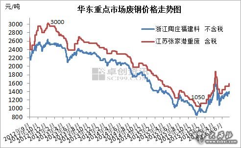 华东重点市场废钢价格走势图。图片来源:卓创资讯