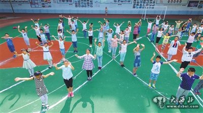 6月30日,江苏省扬州市,汶河小学的学生在操场上庆祝“放暑假了”。图/视觉中国