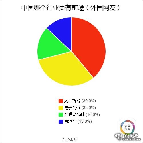 比如问及中国的哪个产业最有前途时,超过30%的中外网友都选择人工智能,不过大家对互联网金融和电子商务的次席地位意见不一。