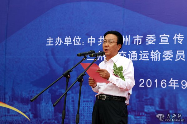 兰州市出租汽车协会领导在活动仪式上讲话。 贾笑云 摄