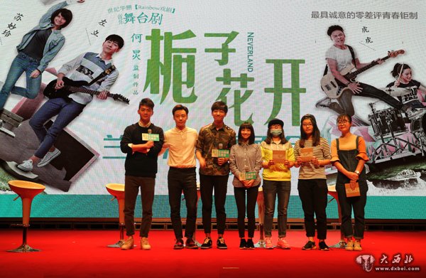 现场幸运观众获得四位主演亲笔签名的CD并合影。 贾笑云 摄
