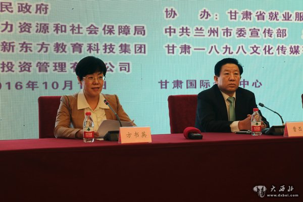 兰州市人社局局长方书英主持创业创新大赛新闻发布会。 贾笑云 摄