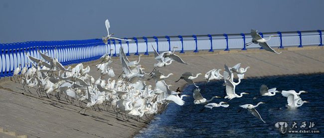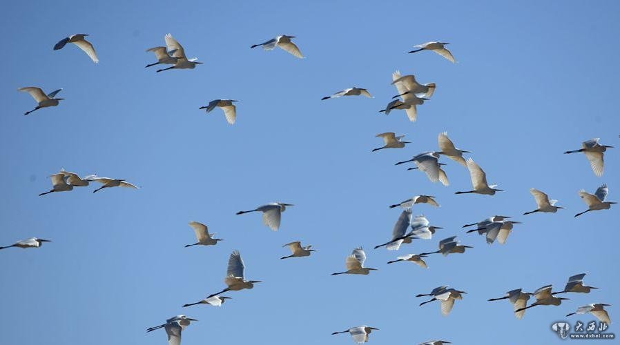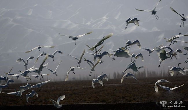 10月29日,上百只白鹭在肃北县城西滩水库和芦草湾湿地栖息。当日,地处祁连山西端的肃北蒙古族自治县天气晴好,成群结队的白鹭在县城西滩水库和芦草湾湿地嬉戏觅食,景象颇为壮观。新华网发(戴友春摄)