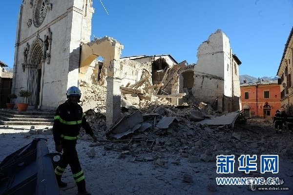 翁布里亚大区东部古城诺尔恰是距离震中最近的城镇,受损最为严重。目击者称,建于14世纪的圣贝尼迪克特教堂在地震中坍塌,仅剩正面墙。