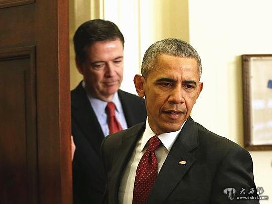 资料:2015年11月25日,美国总统奥巴马(右)与联邦调查局局长科米步入白宫新闻会场。(新华/美联)