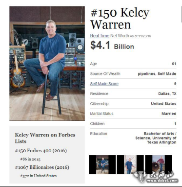图片说明:达拉斯能源传输伙伴公司CEO科尔茨·沃伦,在福布斯排行榜排名150。