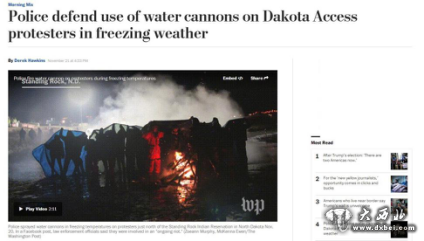 图片说明:《华盛顿邮报》对北达科他州抗议事件进行报道。