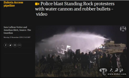 图片说明:英国《卫报》报道原住民抗议建设输油管道