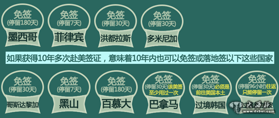 一次签证,省事十年,这样的福利简直不要太好!锦上添花的是,“十年签证”不仅节省了反复办理签证手续的费用和麻烦,更有许多别的国家可以因此免签!以美国为例,持有美国十年多次往返签证简直像是开启了旅游圈的“任意门”!详情看图: