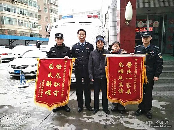 大西北网讯(记者金振华特约记者王成军文、图)2月21日上午,白银市白银区李为兵老人的家属将两面写有“警民一家亲、患难见真情”、“恪尽职守,为民解难”的锦旗送到了七里河公安分局反恐特警大队办公室,对特警大队三班在18日晚帮助走失老人回家的善举表示了衷心的感谢。