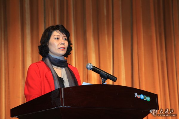 甘肃省室内装饰协会第三届秘书长白娟主持大会。 贾笑云 摄
