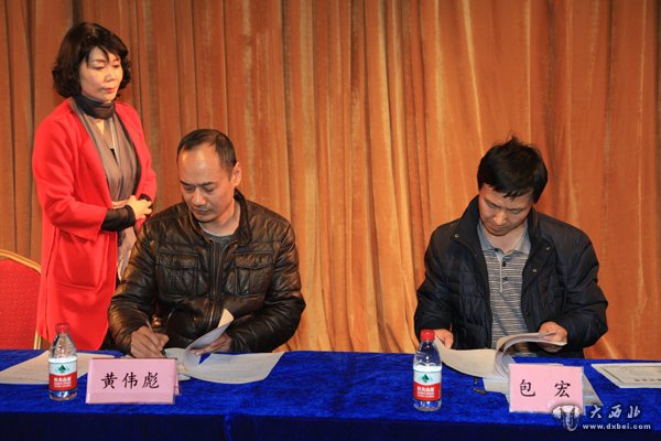 甘肃省室内装饰协会第三届副会长黄伟彪与合作方签约。 贾笑云 摄