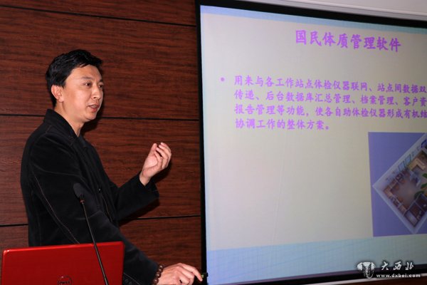 兰州文理学院体育学院院长陈毕栋对政府出台的相关全民健身各种政策及企业在参与全民健身产业过程中保驾护航的优势进行解读。甘肃省国民体质健康促进会主席苏天全面系统精彩解读集团大健康产业思路及社区健康小屋服务项目、功能等便民服务的实施与互联网的关系。