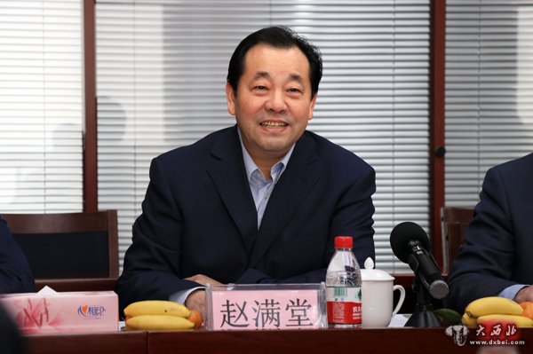 盛达集团董事长赵满堂给周礼耀一行介绍盛达集团情况。 贾笑云 摄