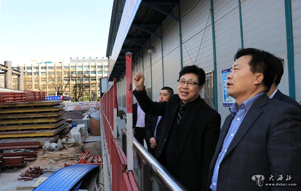 赵爱书记一行在施工现场听取刘大利副总裁关于金城广场项目情况的汇报。 贾笑云 摄