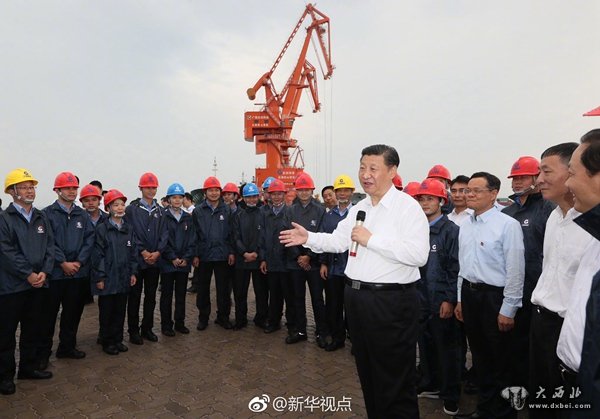 在铁山港公用码头,总书记同工人们亲切交谈。他说,今天考察了合浦汉代博物馆和铁山港码头,这都与“一带一路”有着重要联系,北海具有古代海上丝绸之路的历史底蕴,我们现在要写好新世纪海上丝路新篇章。“一带一路”倡议提出3年来,国际社会广泛响应,这是人心所向。我们要在“一带一路”框架下推动中国大开放大开发,进而推动实现“两个一百年”奋斗目标、实现中华民族伟大复兴,携手同心共圆中国梦。