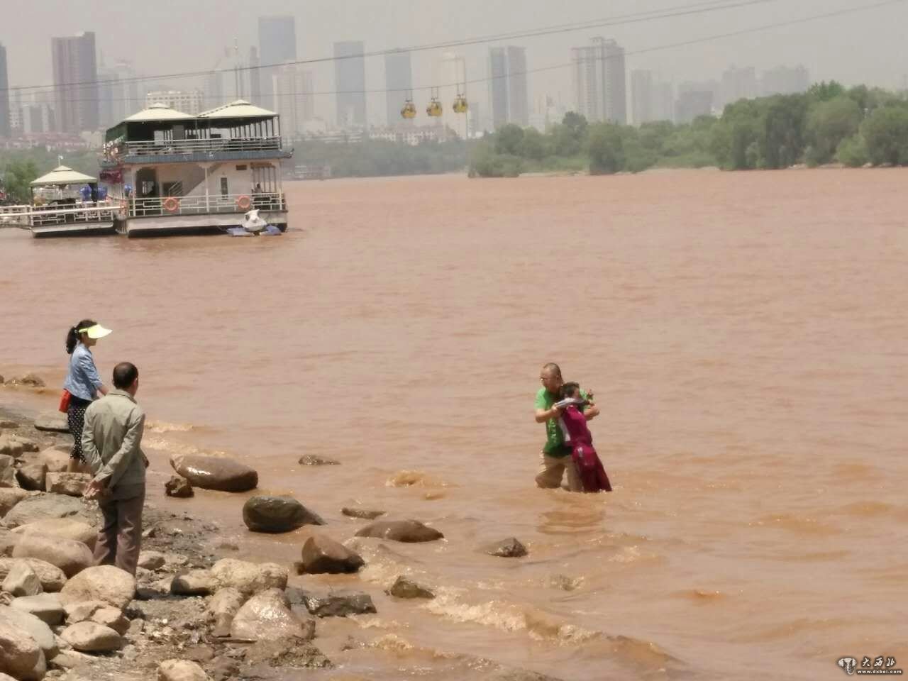 ㈢男游客抱住轻身女子向岸边靠近