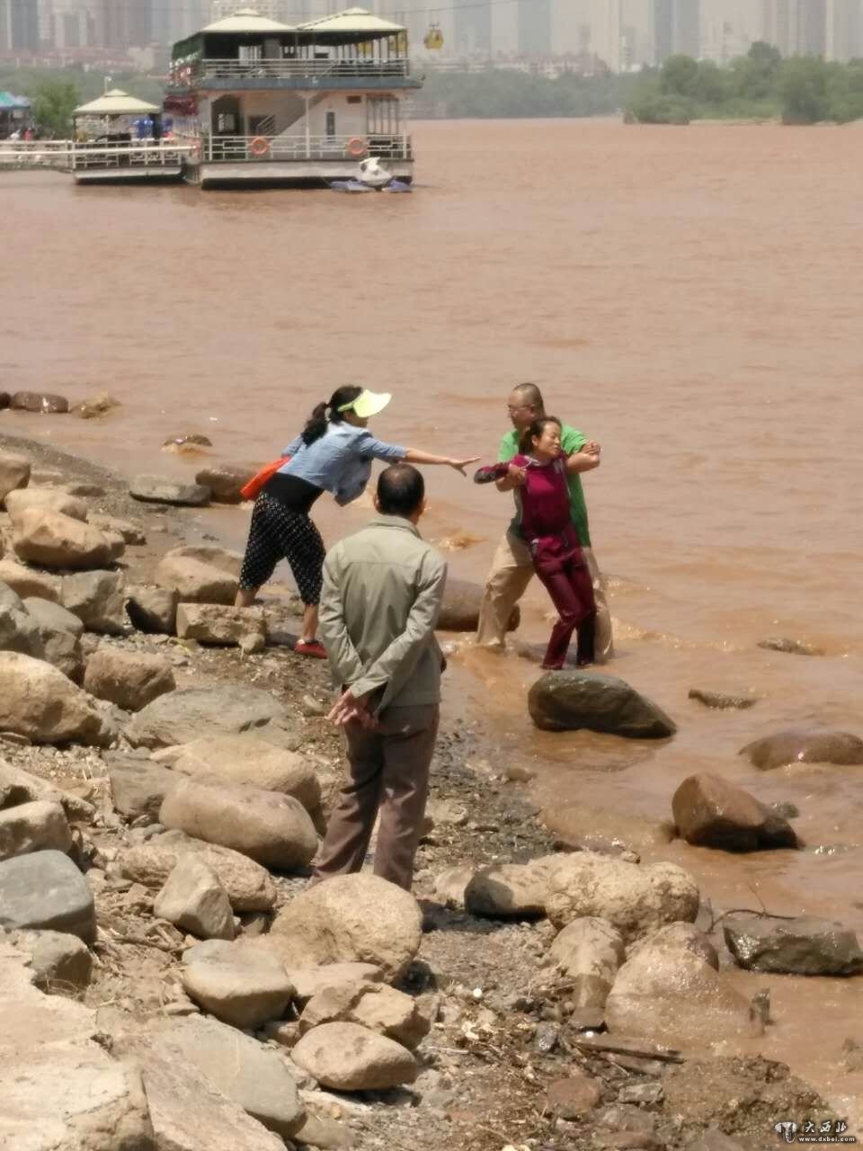 ㈤靠近岸边岸边的一女子试图帮忙