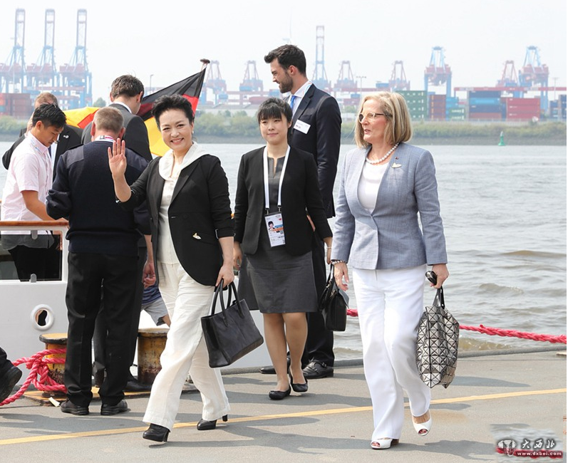 大西北网讯 当地时间7日上午,应德国总理默克尔丈夫绍尔邀请,国家主席习近平夫人彭丽媛同出席二十国集团领导人第十二次峰会的部分代表团团长配偶乘船参观汉堡港。