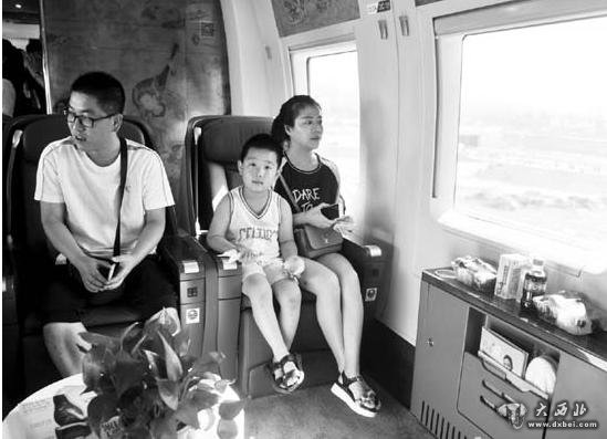 秦安市民一家三口感受高铁商务舱。